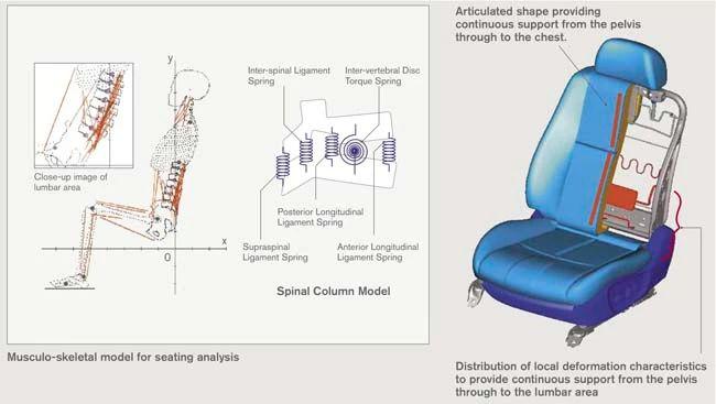 比如座椅尽量设计成,把人体拗成上半身与大腿之间呈 128 °( ± 7 ° ),大腿与小腿之间呈 133 °( ± 8 ° )的姿势等等。