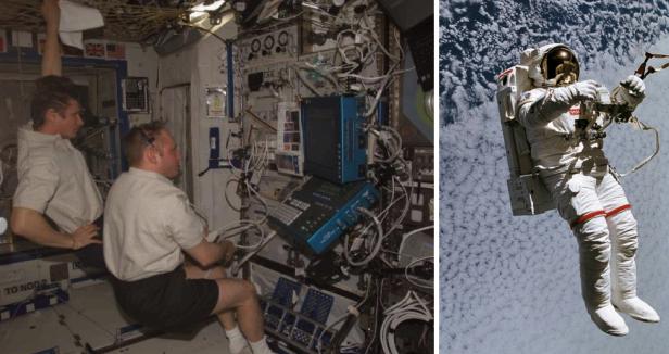 当时的 NASA 的研究员们也纳闷这事儿,而早期的航天技术不够发达时,出于安全考虑,宇航员们几乎都是被绑在椅子上的。
