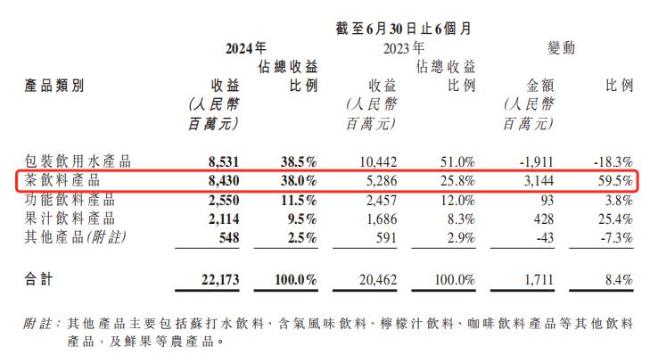 |农夫山泉茶饮料产品同比增长 59.5%