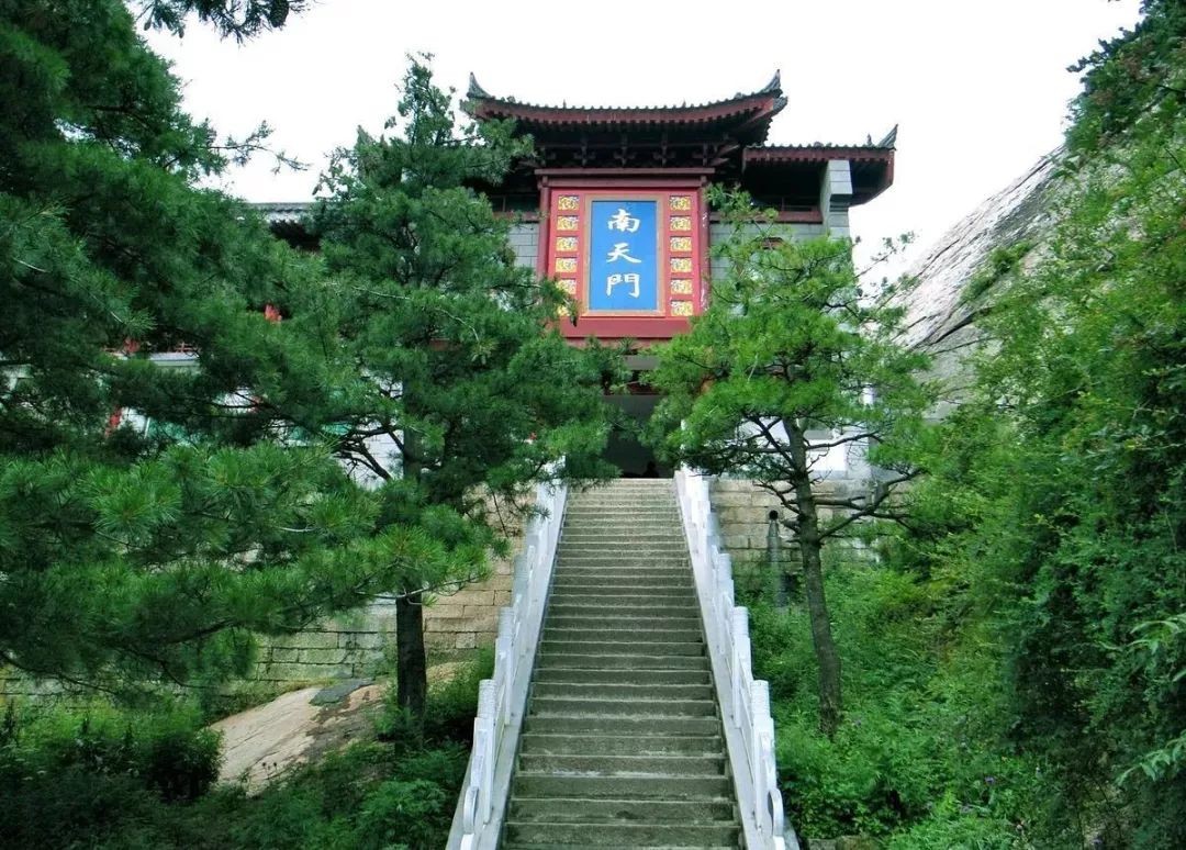 南天门在南峰东侧。自东峰南坡下经二仙龛、紫气台,沿崎岖小径攀援即达。为登临朝元洞、长空栈道、贺老石室、全真崖的必由之道。