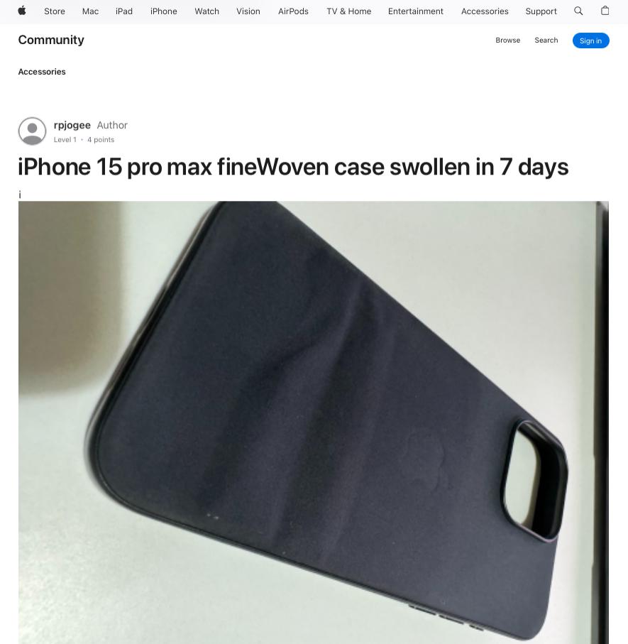 除此之外,在苹果的官方论坛上还有多个用户反映,称精致斜纹保护壳很容易出现材质皱缩现象。