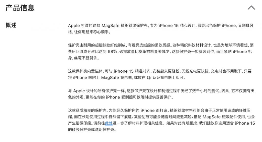 苹果在官网上写道:「精织斜纹材料可能会由于正常使用造成的纤维压缩,而在长期使用过程中自然留下痕迹。」