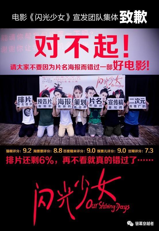 近日,上映不久的青春片《闪光少女》官微发布一张宣传团队集体“下跪致歉”的海报引起了关注。