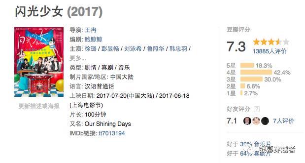 《闪光少女》上映6天以来,豆瓣评分7.3,为近几年青春片最佳,如此口碑与目前影片近4千万的票房难成正比。