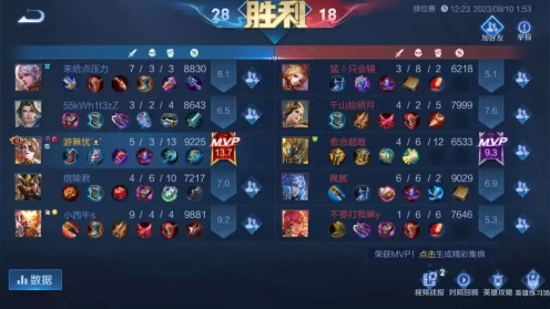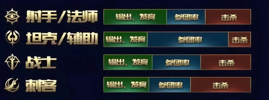 坦克/辅助英雄,参团率数据占比最高,其次是输出和发育,最低的是击杀,因此对局过程中只需要:蹭助攻,减少阵亡次数,即使0-1的战绩也能拿到金牌评分,甚至是全场MVP!