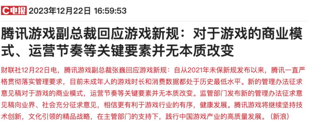 腾讯方面就表示,对于游戏的商业模式、运营节奏等关键要素并无本质改变。
