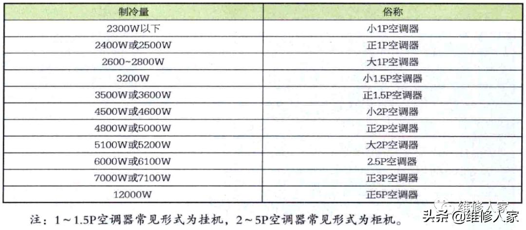 制冷量为2400W约等于正一匹,以此类推,制冷量4800W等于正二匹,对应关系见下表。