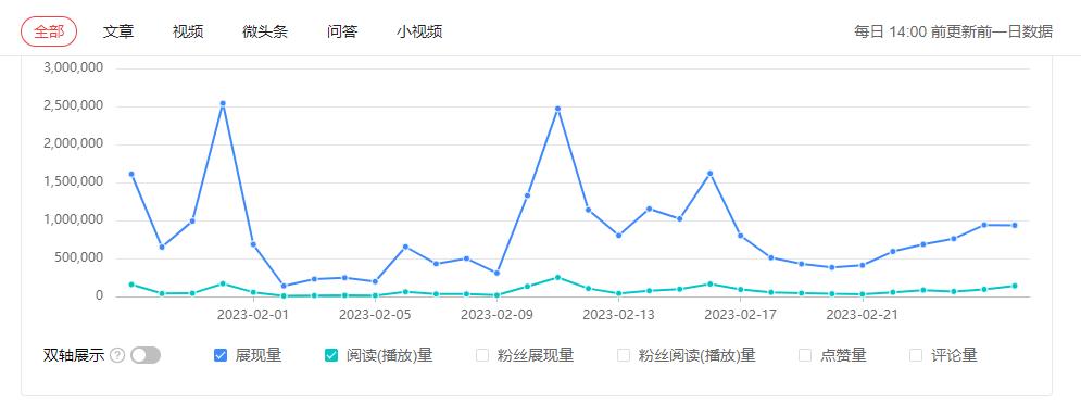 像那种100万粉丝的大号,每天粉丝的展示也要100万,平台再给200万展示,就是300万展示,实现50万以上的阅读量。