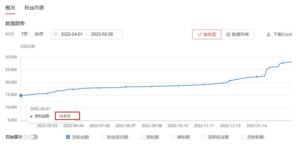按照这个速度,就是2025年12月,粉丝数在6万左右。
