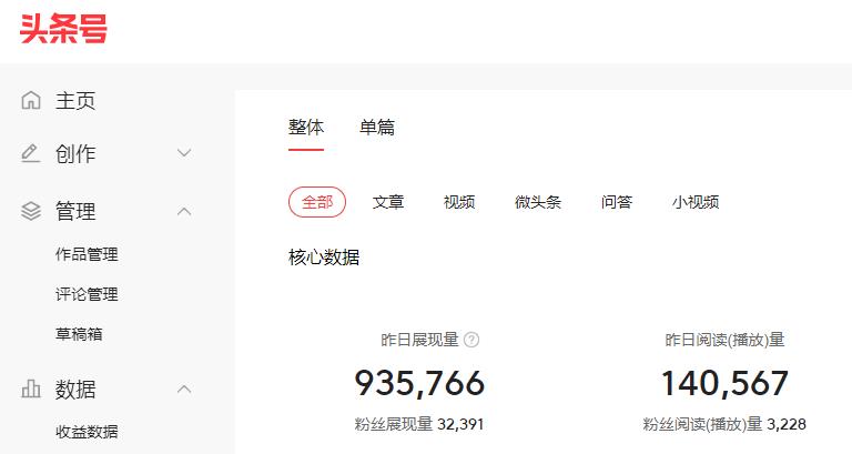 所以说,假如是50万粉丝,每天的粉丝展示量就是50万。再平台额外送一点展示量,肯定就超100万展示量每天了。