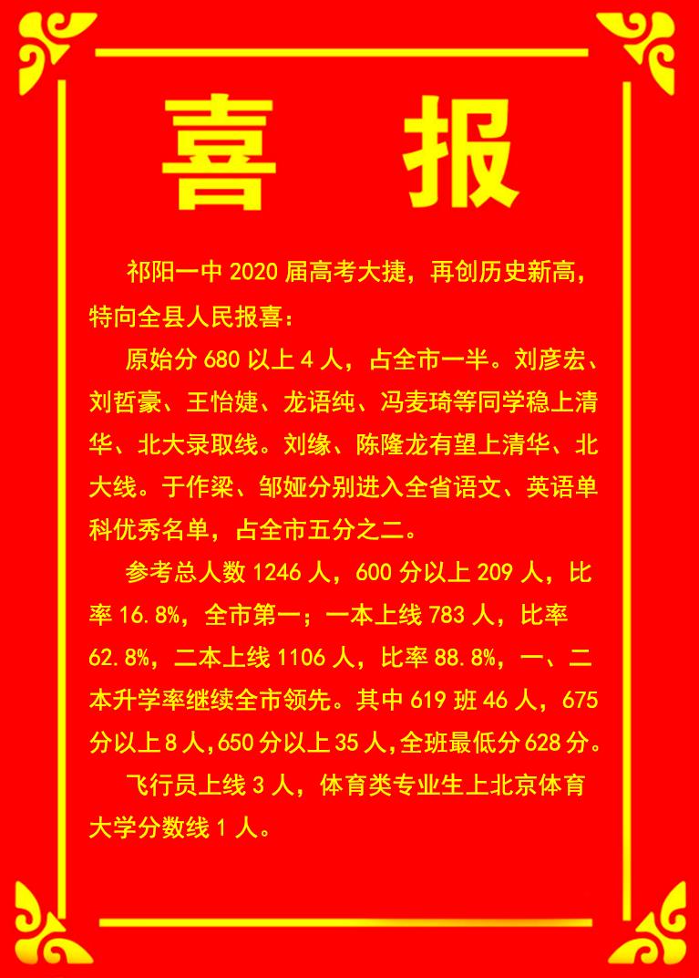 2025年:祁阳一中一、二本上线突破1100人大关。其中一本上线突破670人,比2025年增加200人。
