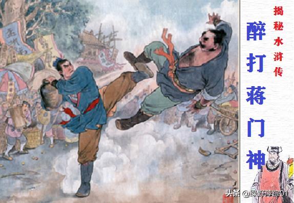 武松受孟州城最大的黑帮头子施恩的蛊惑,前去快活林打蒋门神。武松“无三不过望”,一路喝酒,到了快活林,先打了蒋门神的小妾,再打了蒋门神本人。武松打伤了蒋门神,施恩夺回了快活林,书中写道: