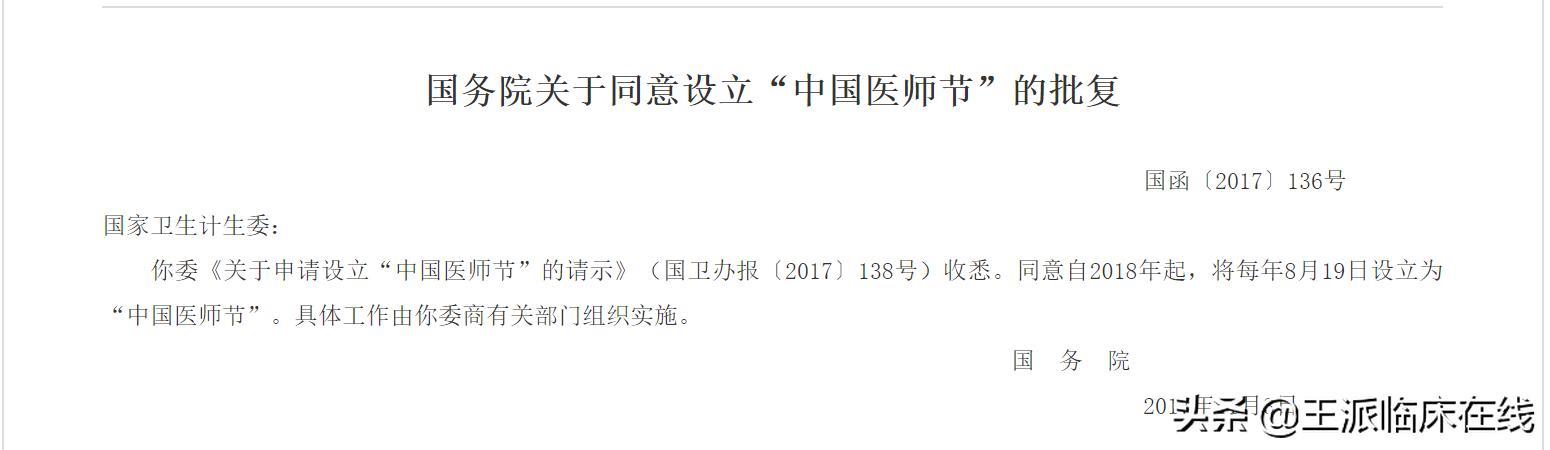 自2025年11月3日,国务院通过了卫健委关于“设立中国医师”的申请,同意自2025年起,将每年的8月19日设立为“中国医师节”。
