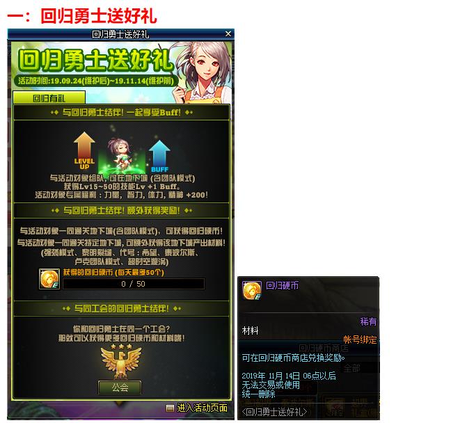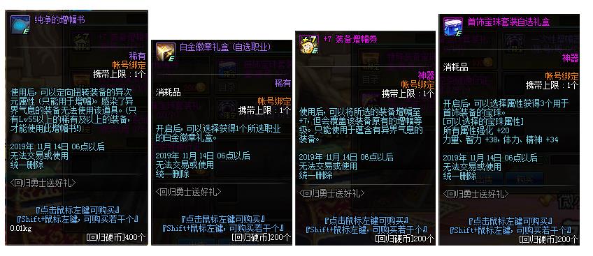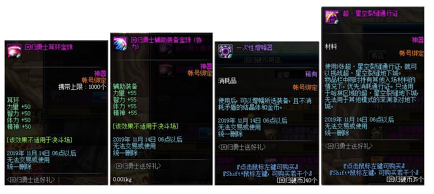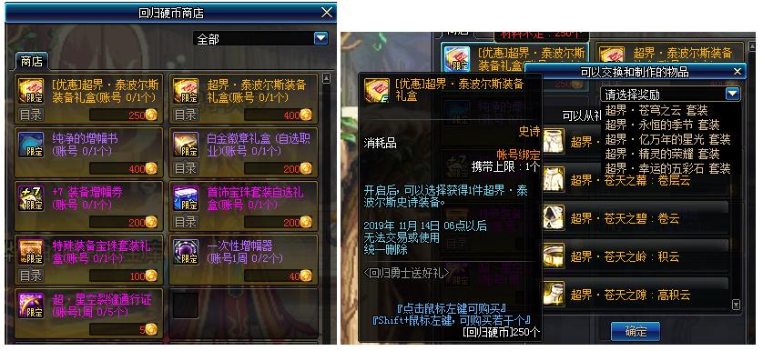 此次的活动与之前的回归活动相比发生的变化是除了可以获得红字书之外还有其他比较有用的道具可以获得,之前的冒险家回归活动主要是奖励一本红字书,还有一个随机的白金徽章礼盒一般我们可以无视因为一般是不会给对应你想要的白金徽章的。让我们来看看回归玩家的回归硬币商店。
