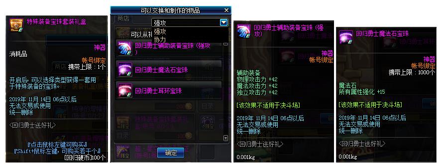 其他的宝珠就比较一般了都是比较容易获取的也不值几个金币,增幅器配合增幅书使用的,克伦特是真的贵,想白漂红十的玩家可以全部拿来兑换增幅书的增幅器,深渊票就不说了没有什么用,但是没有装备的远古回归玩家可以拿去刷一刷以我对企鹅的了解你必可以刷齐一套。