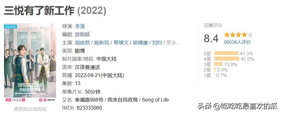 第一名:《三悦有了新工作》8.4分(好意外的第一名)