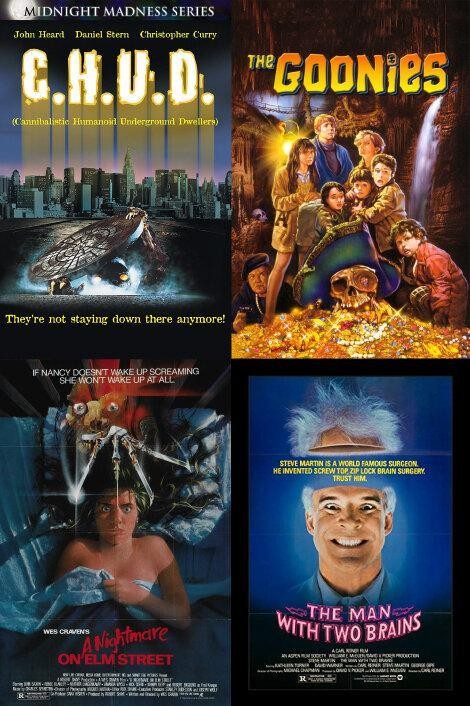 这几部录影带都是知名的80年代电影:描写怪物从下水道窜出的B级恐怖片《CHUD》、关于地底寻宝探险的家庭奇幻喜剧《七宝奇谋》、经典恐怖电影《半夜鬼上床》