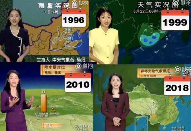 1996年,杨丹第一次出现在央视的《天气预报》上,她穿着一袭修身的黑色连衣裙,露出标志性的小虎牙,让人倍感亲切,由此也被大家称为“气象一姐”。