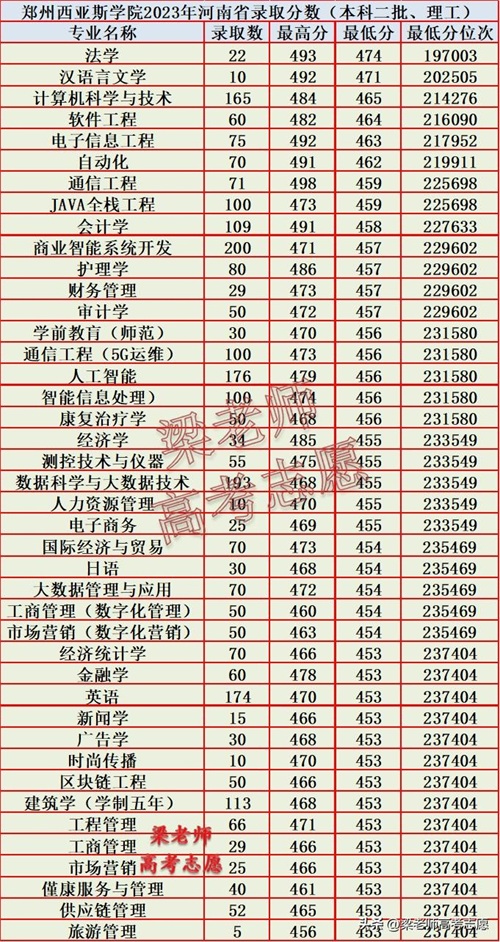 民办二本,郑州西亚斯学院2023年在河南省分专业录取分数