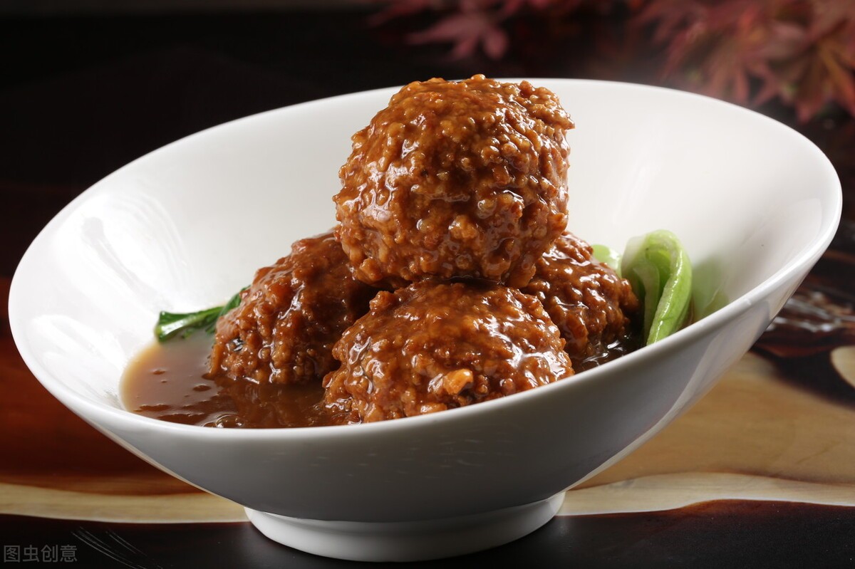 5 .另起锅开小 火,倒入少许水淀粉调成芡汁,加点盐炒 匀,淋在丸子上即可。