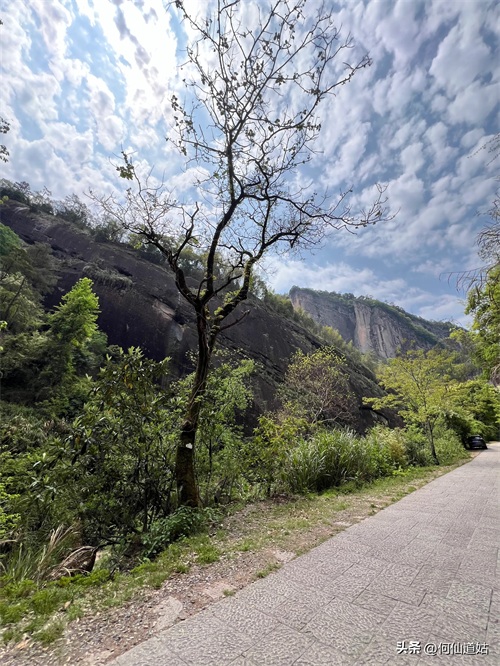 而实际不是这样,游客稀少,属于冷门,一点也不为过。为什么?一是太偏,在景区的东北最远处,不过,景区中巴还是卖力,大红袍或武夷宫都可以乘坐过去,这里没有公交,也可以自己开车去,直接开到山脚下,而旅游中巴只到门口,从门口到山脚,有两三公里路程,尽管是宽阔公路,但也累人,不过,搭客的有摩托车,10元一趟,也方便。二是这个时候没有水,我以为是山顶冒出来的泉水,当地人告诉我说不是,是雨水,要下雨才有水飞下来。