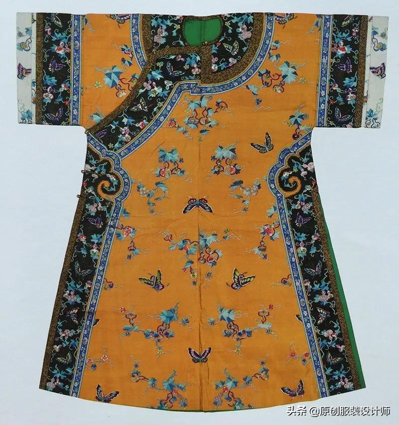 图十 清光绪黄缎绣牡丹蝶氅衣