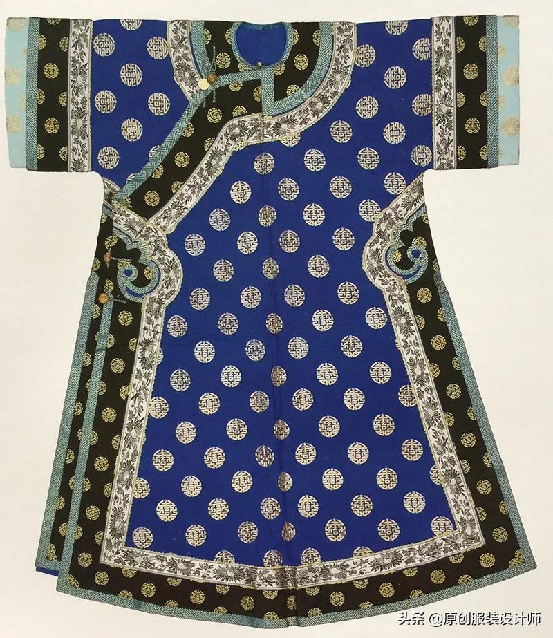 图七 清光绪宝蓝色罗平金绣团寿字纹单氅衣