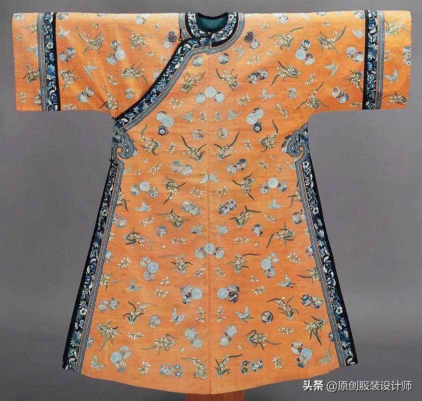 图四 清代桔色地兰花蝴蝶纹缂丝氅衣
