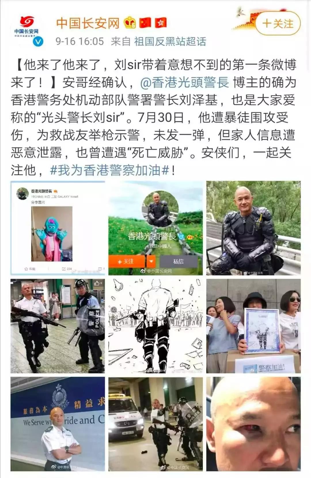 中央政法委新闻网站官方微博@中国长安网 确认,@香港光頭警長 博主的确为香港警务处机动部队警署警长刘泽基,也是大家爱称的“光头警长刘sir”。