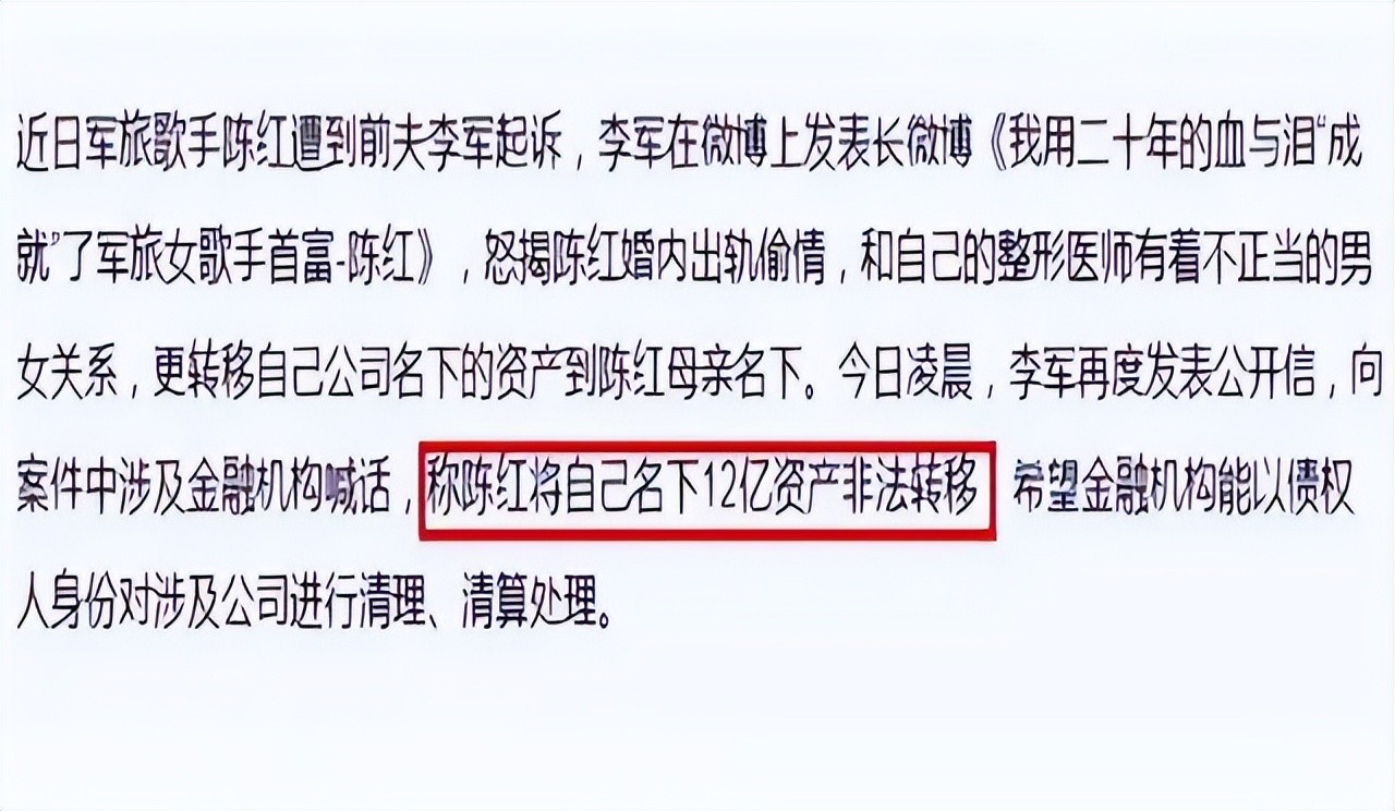除此之外李军还点名陈红用自己的钱去整容,还出轨了男医生,骗取了自己足足有十二亿。