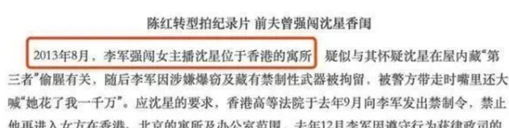 2013年,新闻报道李军贸然闯入沈星家中,将沈星身边的男人进行了一顿暴打。