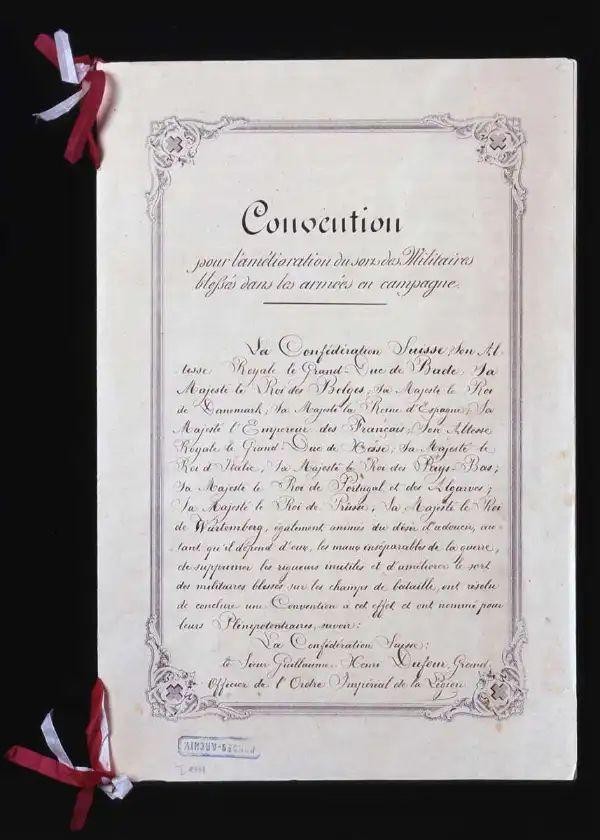 日内瓦公约的历史,红十字会是日内瓦公约形成的关键角色,其创始人亨利-杜南发起了国际谈判,最终于1864年通过了第一个《改善战地军队伤员状况公约》。