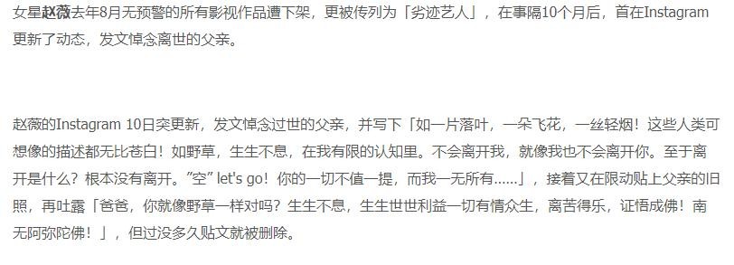 整个人在娱乐圈就是“查无此人”的状态,而就在网友快要将其遗忘的时候,赵薇却更新了社交账号。
