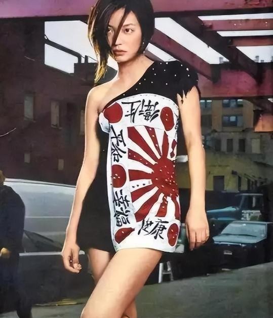这张照片中,赵薇所穿衣服上的图案,和日本的旭日旗,也就是日本军旗极为相似。