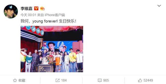 曾和何炅一起录制过两季《向往的生活》的刘宪华,在0点超准时的送上祝福。感谢何炅对他耐心解释很多不懂的东西,如家人般温暖。