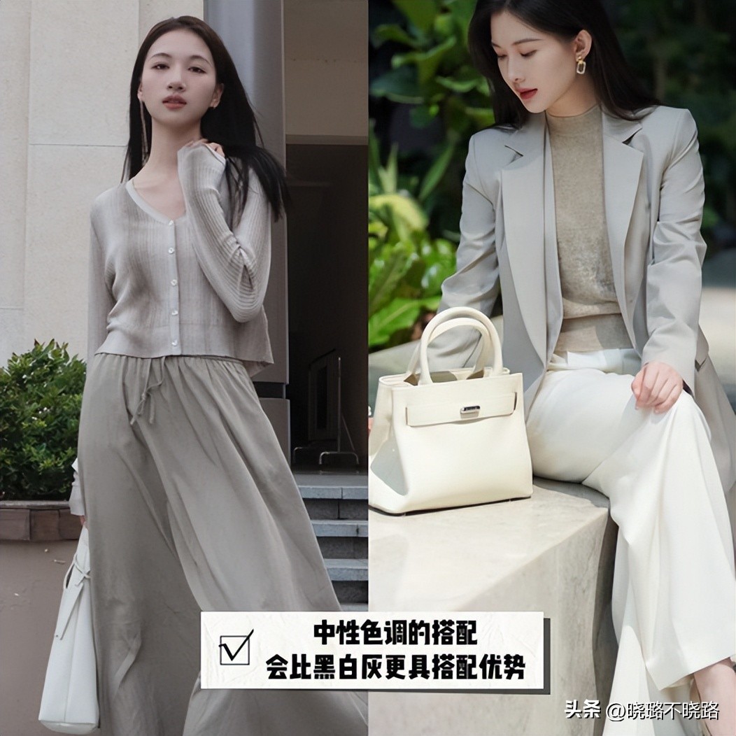 像黑白灰这样的基础色系搭配确实是不挑人,但其实对于肌肤和气质的提衬也确实是没有什么优势在的,所以在这里推荐大家想要搭配基础色调的话其实可以将中性色来进行优选呢,本身的显白效果真的很明显而且中性色对于气质的优化力也趋向于高级简练。