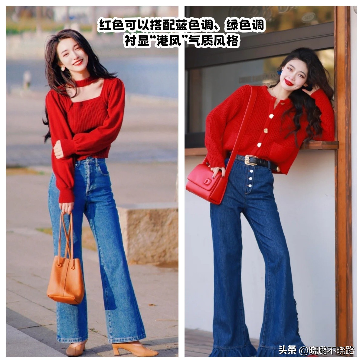 秋季阶段当然也可以将绝对时髦亮眼的复古风格多多的进行营造运用,正红色系的搭配与同饱和度的蓝色、绿色调都是很吸睛的色系组合,且这两款色调也有着很好的显白效果嘞,快试试时髦复古的港风配色吧!