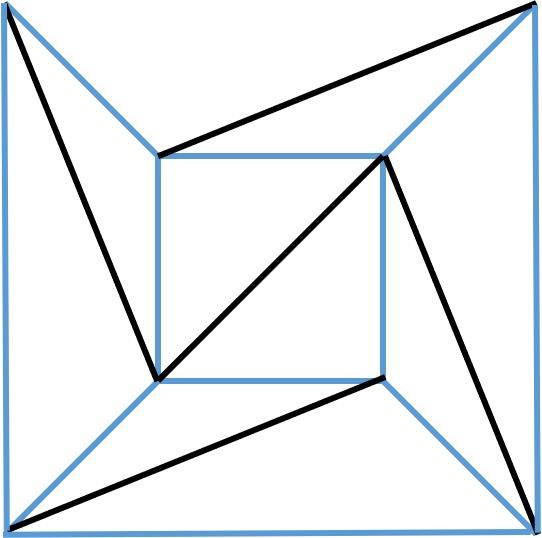 通过一系列“擦边”,图形会变化成一个“飞镖”的样子: