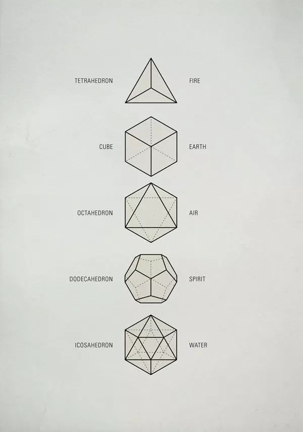 柏拉图认为世界由四古典元素组成,其形状如正多面体中的其中四个。