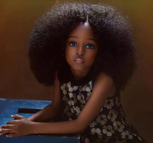 照片中,女孩儿在简简单单的场景中摆出简单的姿势,向镜头前的大家展现出了她闪着巧克力光泽的慕斯感皮肤,蓬松又自然的头发。典型的黑美人,可能不受大众审美认可,但是,她那水汪汪的幽蓝色二次元大眼睛,是不是戳中了屏幕前许多妈妈的心房。