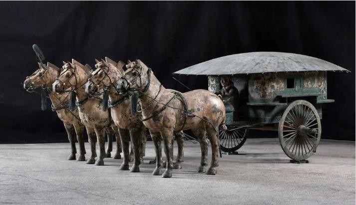 秦陵铜车马是继秦兵马俑发现之后的又一秦代考古重大发现,是迄今为止形体最为宏大、结构最为复杂的古代青铜器,也是驾具最完整、制作最精美的陪葬车马,因造型精美绝伦,工艺高超,被誉为“青铜之冠”。