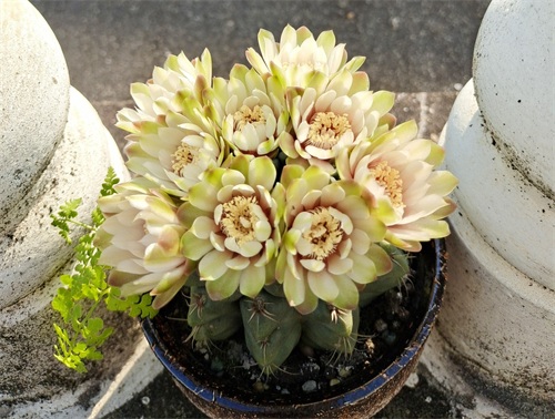 值得提到的一点是,非常炎热的夏季,还是需要给绯花玉找一个相对阴凉通风的环境的,因为夏季是绯花玉的开花季,花苞被强光一晒,可能会晒焉掉。强烈的阳光也会灼伤球体的表面。