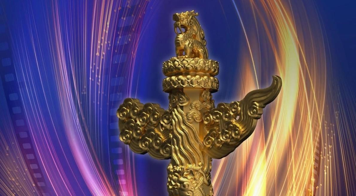 奖杯做成一根小型华表,上面雕着祥云和蟠龙,象征着电影事业的繁荣和腾飞。