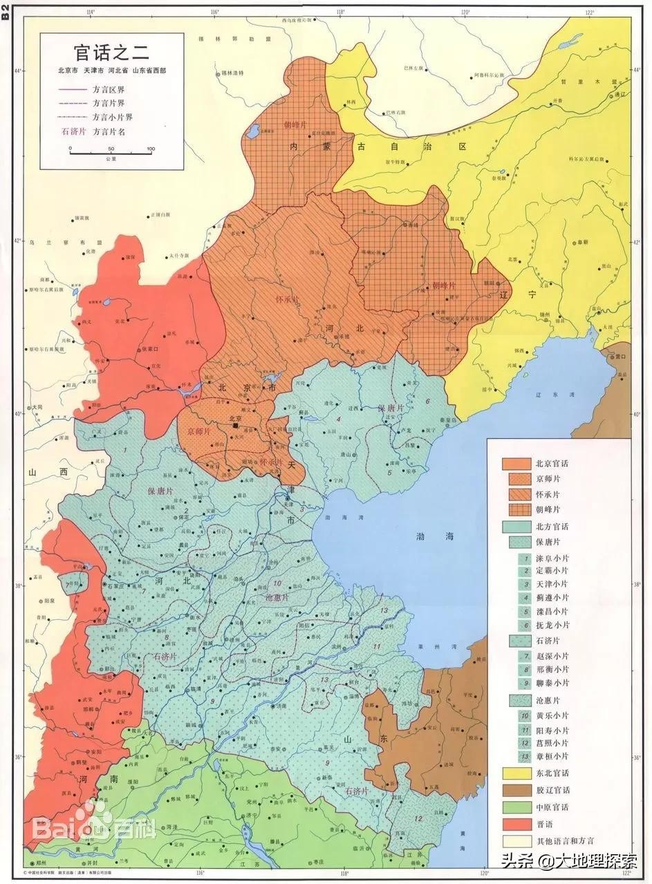 胶辽官话内分登连片、青州片(青莱片)和盖桓片(营通片),各片区内部又有细分