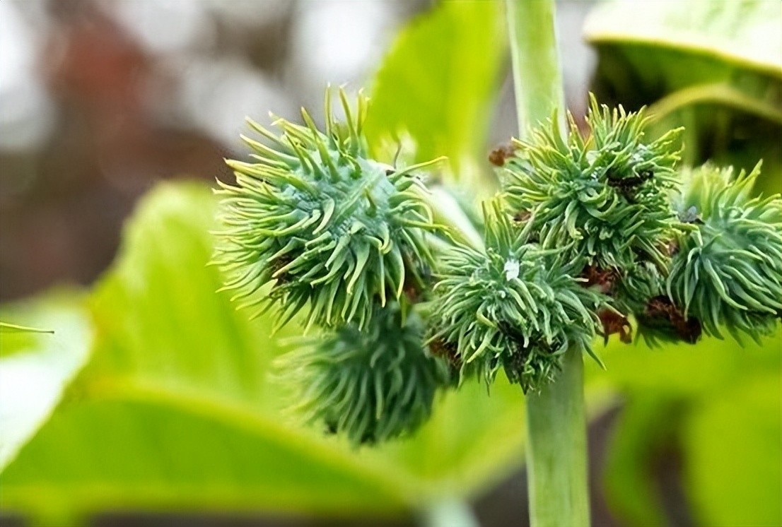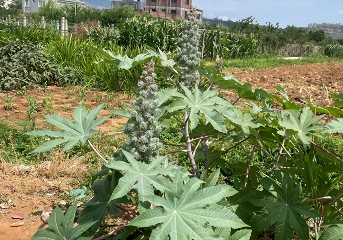农村的自然条件为蓖麻的生长提供了诸多助益,它们会生长在杂草堆中,凭借“扎人”的外表特立独行。蓖麻也会独自生长在僻静角落,慢慢扩大自己种群,圈地为王。蓖麻全株都含有剧毒,尤其是蓖麻种子毒性更为强烈,仅需要极小的剂量便能使健康人体受到损伤,情况严重的话还会致人死亡。