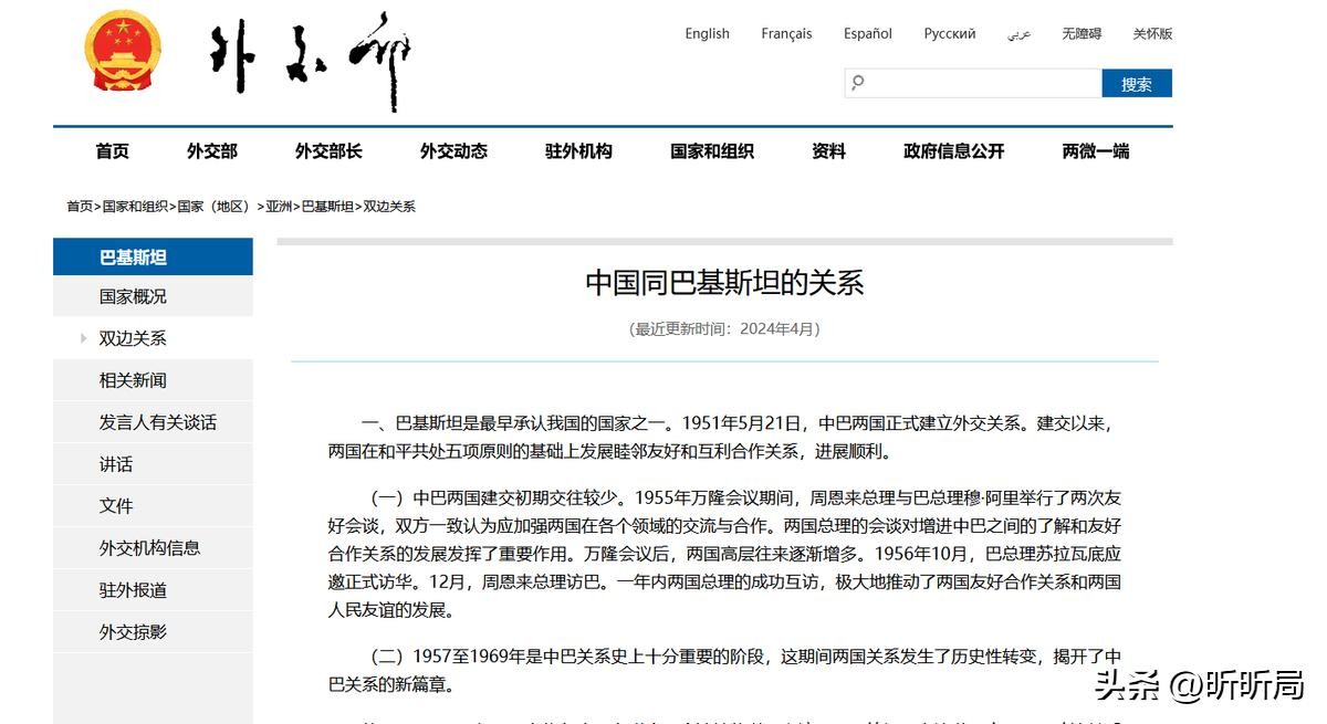 中华人民共和国外交部:2024年4月 “中国同巴基斯坦的关系”