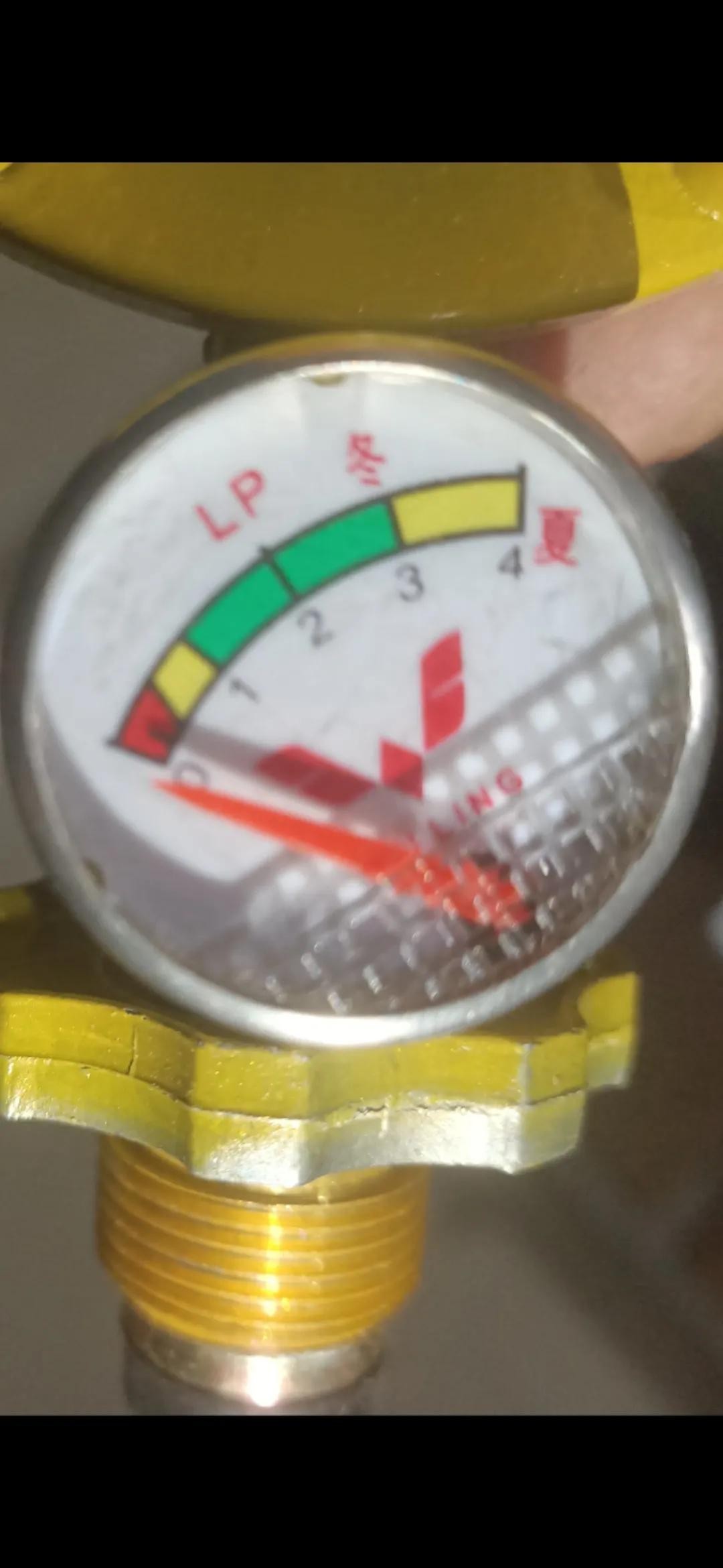 红色是气压过低(该换瓶了)、小黄色是预警气压(请提前准备)、绿色是正常气压(可正常使用)、大黄色是危险气压(表示瓶内压力已最大化)。