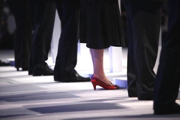 如果要在所有爱鞋中选出一个宠儿,那一定非豹纹莫属了。在2002年会议上,梅姨因穿了一双豹纹高跟鞋,收到了各路媒体的广泛关注。从那时起,不少记者就拜倒在梅姨的阔腿裤下---给她的豹纹鞋拍特写。