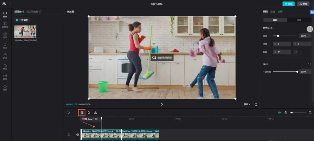 将视频导入下方时间轴中点击视频,选择【分割工具】即可进行分割~
