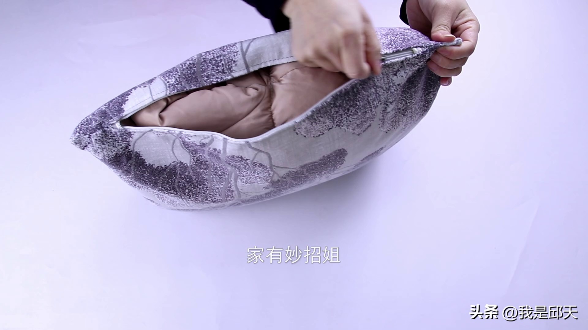 接着,我们再把拉链拉上,这样一个旧羽绒服改造的抱枕就制作好了,方法非常的简单。